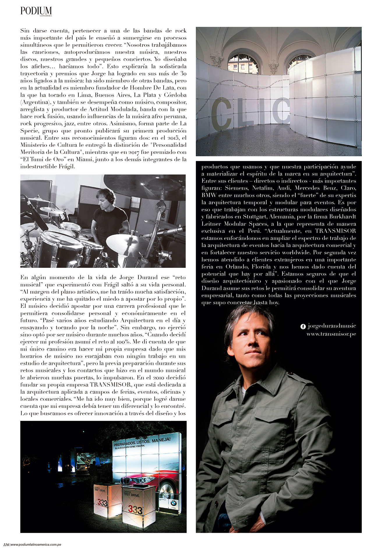 Entrevista realizada a nuestro gerente general, Arq. Jorge Durand, en la que habla de su trayectoria como músico y como empresario. No se la pierda!