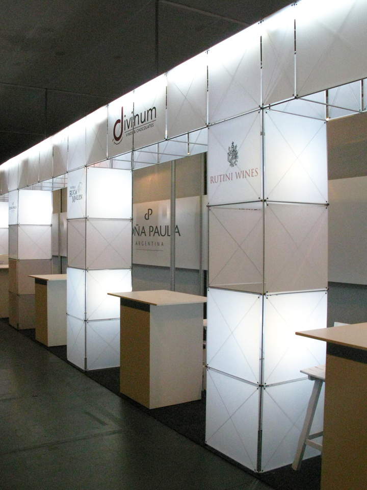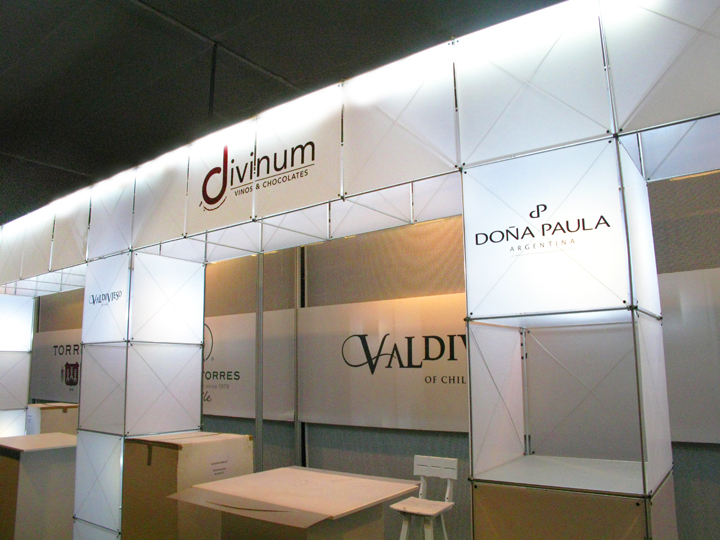 Proyecto: Stand DIVINUM 2012. Cliente: Distribuidora Vinum S.A. - Divinum S.A. Ubicación: Expovino 2012 - Escuela Militar de Chorrillos. Sistema modular: constructiv clic, constructiv pila petite Fecha: Noviembre 2012